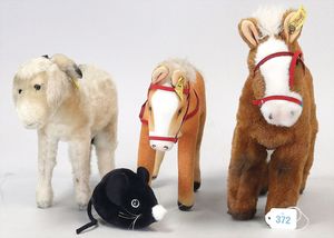STEIFF 3 Teile, mit Knopf, Schild und Fahne, Esel und 2 Ponys, bespielt