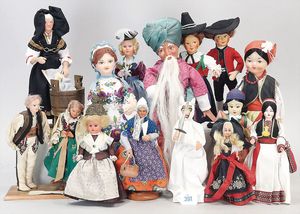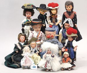 Konv. Trachten-Puppen, versch. Hersteller und Materialien
