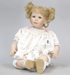 ZASAN Künstlerpuppe, deutsch, gemarkt 11/750, Biskuitporzellan-Kopf, -Arme und -Beine, Stoff-Rumpf, 46 cm, blaue fest eingesetzte Glasaugen, geschl. Mund, Sitzbabykörper