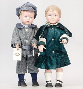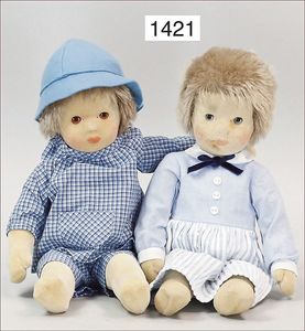 Max und Moritz, Celluloid, Einbindekopf-Puppen, 18 cm, Stoffkörper, Orig.-Kleidung
