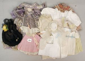 Konv. Puppenkleidung, 8 Teile Unterwäsche, 1 Haube, 1 Puppenkleid, aufwendig genäht, Spitze, Alter ?, 1 Strickkleid, 1 Haube für größere Puppe