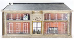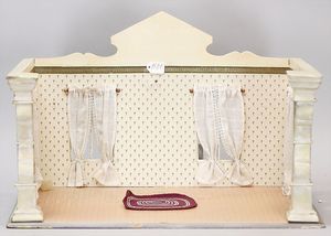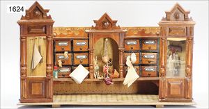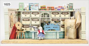 kl. Gründerzeit-Kaufladen, mit Schaufenstern, 60 cm breit, 36 cm hoch, ohne Theke, Orig.-Tapete an Wand und Boden, schöne Größe