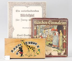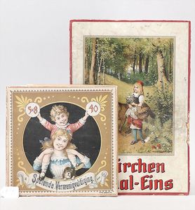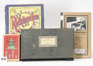 Konv. 4 Lese- und Rechenspiele: Rötkäppchens 1 x 1, das Stäbchenlegen, Tannenspiel und Lesekästchen von Paul Reiff, auf Vollständigkeit nicht überprüft
