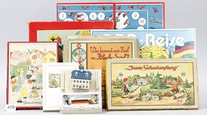 Konv. Spiele, auf Vollständigkeit nicht überprüft, u.a. zum Schulanfang, Bleyle Spiel, Geduldsspiel, 1 Legespiel von Schowanek, DDR Reise, Erzgebirge Miniatur anläßlich der Wiedervereinigung 3. Oktober 1990