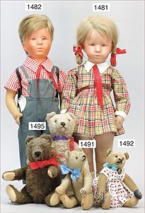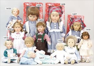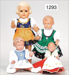 SCHILDKRÖT 4 Teile, Replika, Inge, 25 cm, Hans, 25 cm, 1 Erica, 46 cm, dazu 1 Trachtenpuppe, 70er Jahre, alles neuwertig