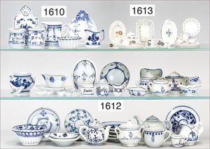 13 Teile für Puppenküche, Porzellan, blau/weiß, Speiseservice