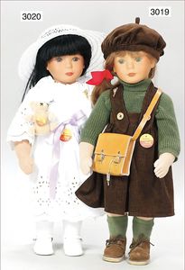 STEIFF Puppe Andrea, von 1987, limitierte Auflage, Tasche u. Mütze, mit Schild und Knopf als Ohrring, 49 cm
