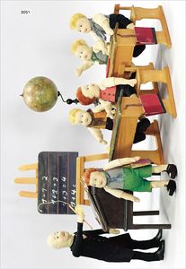 STRUNZ/NÜRNBERG Filz-Puppenschule Firma Strunz/Nürnberg, bestehend aus 6 Karikaturpuppen: Lehrer 32 cm, 5 Schüler 24 cm, Schulmobilia und Schulaccessoiers, guter Zust., dekoratiev, ein ausergewöhnliches Stück für den anspruchvollen Sammler, ca. 1910
