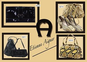 AIGNER feine Damen-Abendtasche, schwarzer Lack, mit magnetischem Druckknopf, innen mit Aigner-Emblem, Innenfutter schwarzes Wildleder, sowie beigefarbenes Leder, 1 Reißverschluss, 37 cm breit, 21 cm hoch, leichte Abnutzungsspuren, sonst schöner Zust.