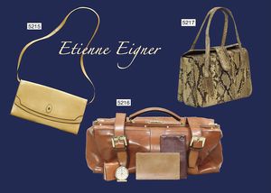 AIGNER Damen Handtasche, beige, 50er Jahre, Aigner Emblem an der Frontseite, Innenfutter weiches, beiges Kalbsleder, mit goldfarbenem Schriftzug Etienne Aigner, Reißverschluss an der Seite, Trageriemen mit Druckknöpfen befestigt, dazu passendes Portemonnaie, minimale Gebrauchsspuren altersbedingt
