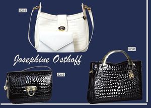 JOSEPHINE OSTHOFF Handtaschenmanufaktur Villingen, schwarze, klassische Ledertasche, Lack, Krokodiloptik, Innenfutter schwarzes, weiches Leder, 3 Fülltaschen, seitl. eine Seitentasche mit Reißverschluss, 1 langer Schulterriemen, größenverstellbar, 25 cm breit, 20 cm hoch, schöner Zust., 70er Jahre