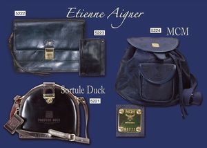 ausgef. gr. cognacfarbene Tasche, goldener Drehverschluss, 1 Trageriemen, ca. 1960, Made in Italy, gr. Nähte, Innenfutter beigefarben, Reißverschluss altersbed. angelaufen, dazu 2 schöne Portemonnaies, 1 Schultertrageriemen, 35 cm breit, mit Trageriemen, 40 cm hoch, seitl. etwas verschlissen, 3 cm tief, feines klassisches Design, in Aufbewahrungsbeutel
