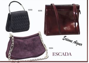 ESCADA ausgef. Damenhandtasche, in Schlangenleder-Optik, Druckverschluß mit Escada-Prägung, Innenfutter schwarzer Stoff mit Seitentasche und Reißverschluss, Escada-Emblem, Made in Italy, 2 Schulterriemen, 31 cm breit, 25 cm hoch, mit 4 Füsschen, in Orig.-Aufbewahrungssäckchen, neuwertig
