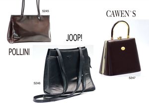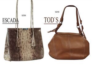 Konv. 2 Handtaschen, 1 x Hersteller Your sixth sense, weiches Leder, runde Form, 30 cm breit, langer Trageriemen, 22 cm hoch, sehr guter Zust., dazu 1 schwarze Ledertasche, ebenfalls runde Form, 29 cm breit, 24 cm hoch, Silberverschluss, Leder-Trageriemen, Innenfutter Stoff, 2 kl. Seitentaschen