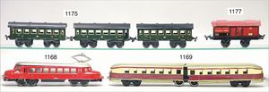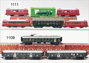 MÄRKLIN H0, Schienenbus, mit 3 Beiwagen, guter Zust., techn. nicht geprüft, im Orig.-Kart., dazu 1 Personenwagen 341, schwarze Clown-Kupplung, guter Zust., im Orig.-Kart.