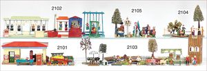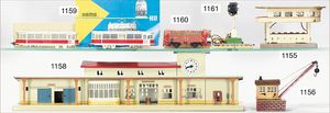 KIBRI Bahnhof mit Bahnsteig, 58 cm breit, bespielt, altersbed. Lackfehler