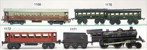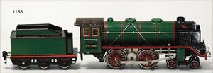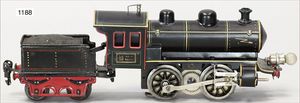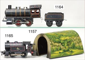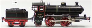 MÄRKLIN Spur 00, R700, Achsfolge B, schwarz, Aufbau Blech, Fahrgestell und Windleitblech Guss, 1 Stirnlampe, Handumschaltung, Bürstenlager zw. den Achsen, 2-achsig. Tender, schwarze Klauenkuppl., Blech, off. Achslager 1935-38, guter Zust., für uns keine Zinkpest erkennbar