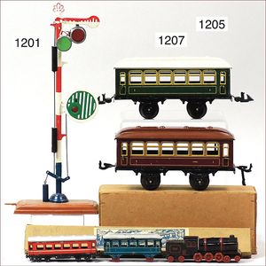 BING Spur 1, 2 Teile Personenwagen, 2. Klasse, 20 cm, bespielt, altersbed. Lackfehler