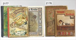 2 Teile Bilderbuch, Nr. 1 Hermann Kalbach Bilderbuch, Union deutsche Verlagsgesellschaft in Stuttgart Berlin Leipzig, Einband etwas verschlissen, Nr. 2 "Der bunte Hans", ein Bilderbuch zur Entwicklung des Farbsinnes, Dr. med Max Taube, Verlag Karlo Reisinger, Einband getaped, um 1900