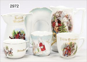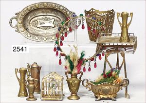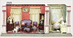 herrschaftl. Gründerzeit-Möbelprogramm, 3-teilig, umbautes Sofa, oben verspiegelt, seitl. Perlmutt-Einlage, 1 Spiegel mit Marmorplatte, Nähtisch, 1 Gardinenstange, 1 Stuhl, Hocker und Tisch