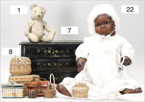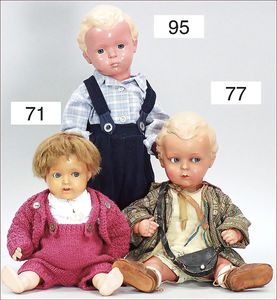 SCHILDKRÖT Hans, gemarkt Schildkröt in Raute 45, blaue eingesetzte Augen, etwas Farbabrieb an den Haaren, Lippen u. Fingernägel bemalt