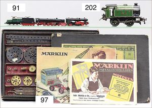 MÄRKLIN Metall-Baukasten Nr. 3, mit 3-teiligem Zubehör, Deckel lose, dazu 1 Märklin-Anleitungsbuch, Nr. 171 A, Anleitungsbuch mit Vorlagen Metall-Baukasten, Motoren, etwas aus dem Leim gegangen