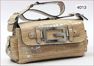GUESS neues Modell, beige, Schlangenoptik, versilberte Beschläge, Magnet-Druckknopf, 29 cm breit, 14 cm hoch, Innenfutter Stoff, seitl. Reißverschluss, mit Seitentasche