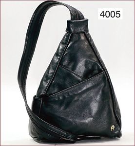 ETIENNE AIGNER Rucksack, 3-eckige Form, vorne 2 Seitentaschen, 1 x mit Reißverschluss, Trageriemen mit Reißverschluss, zum Teil weißes/schwarzes Kalbsleder, 23 cm breit, 31 cm hoch, Innenfutter Stoff, unberührter Zust.