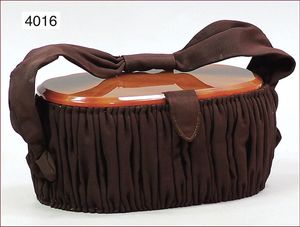 CHARLET Bag, New York, gemarkt K & G, 50er Jahre, Kunststoffdeckel, bernsteinfarben, Innenfutter Seide, Seitentasche, mit Etikett, ovale Form, 21 cm breit, 10 cm hoch, 10 tief, leichte Gebrauchsspuren