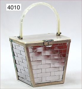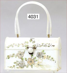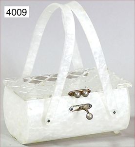 CHARLES S. KAHN INC. Miami, Florida, USA, Design, 50er Jahre, perlmuttfarben, 2 Trageriemen seitl., unten 3 Füße, 18 cm breit, 9 cm hoch, Silberverschluss minim. oxidiert, ausgef.