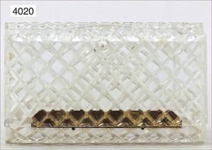 Plastic Bag, Kunststofftasche, durchsichtig, Messing vergoldete Beschläge, Druckknopf, ca. 1960, 21 cm breit, 12 cm hoch, ausgef.