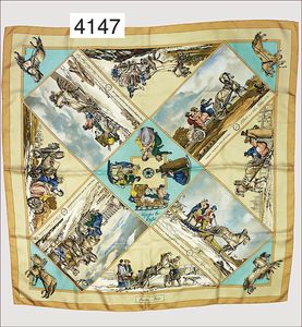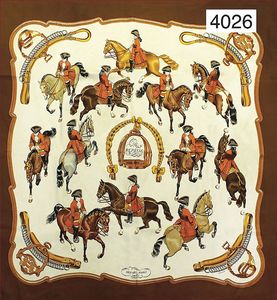 HERMES PARIS "Reprise" Seidentuch 90 cm x 90 cm, Motiv herrschaftliche Reiter auf Pferden, braun/beige, kl. Gebrauchspuren