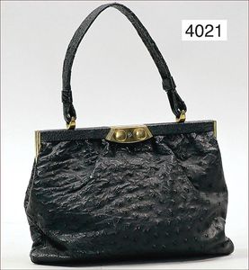 40er Jahre, Damentasche, Straußenleder, Messingbeschläge, goldfarben, 1 Ledertrageriemen, Innenfutter beiges Leder, 2 Seitentaschen, überarbeitet mit passendem schwarzem Straußenleder, Innenfutter Seide, 20 cm hoch, 30 cm breit, schöner Orig.-Zust.