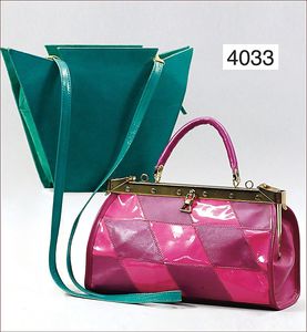Konv. 70er Jahre, ausgef. Damenhandtachen, 1 x Messingfarbene Beschläge, verschließbar, pink/lila Karomuster, Innenfutter beige, 30 cm breit, 28 cm hoch, dazu ausgef., Tasche, Trichterform, Wildledereinsatz, 31 cm breit, 1 langer Trageriemen, Innenfutter Wildleder, schöner Zust.