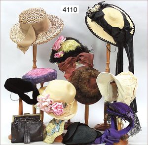 Konv. Damenhüte, Samthauben, mit Spitze, teilw. mit Blumen und Federschmuck, kl. und gr. Größen, bitte besichtigen