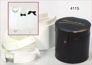 Konv. 3 Kart. mit Leinen gestärkte Hemdeinlagen, wohl 1930, für Männer, ca. 30 Stück, dazu passende Manschetten und Kragen in einer Box