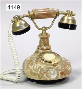 Marmortelefon, 60er Jahre, mit altem Anschluss aus den 60er Jahren, Drehscheibe, 25 cm hoch, 24 cm breit, ausgef. Gearbeitet