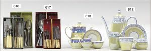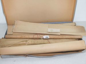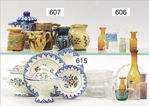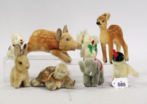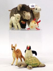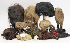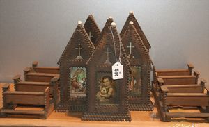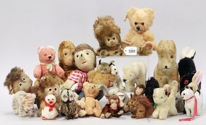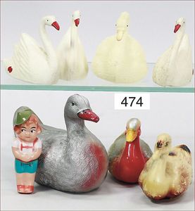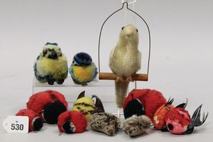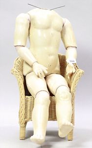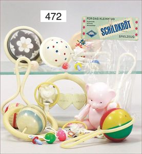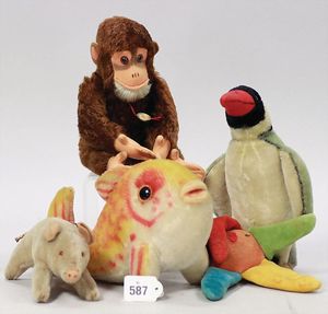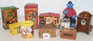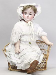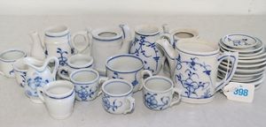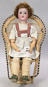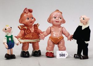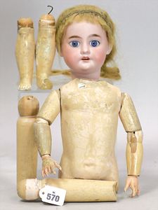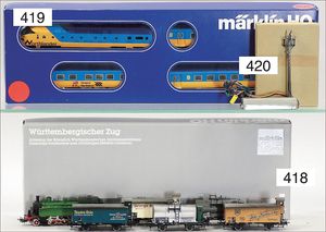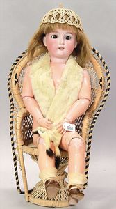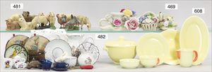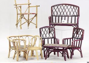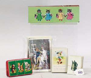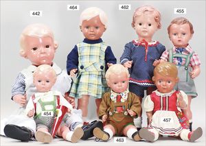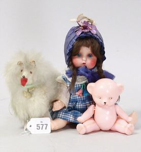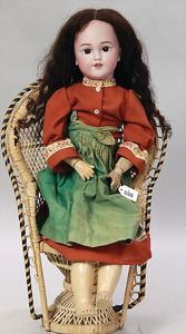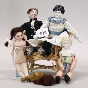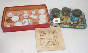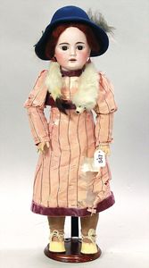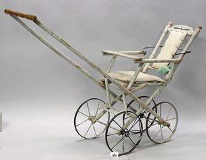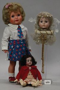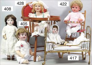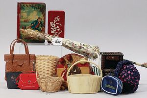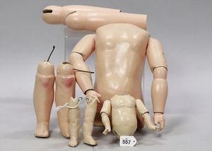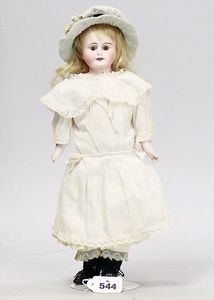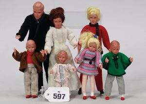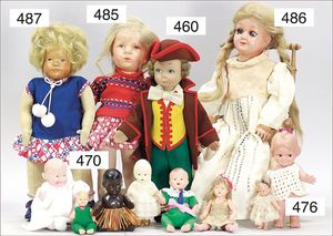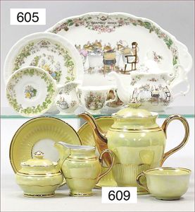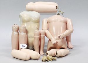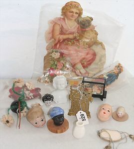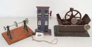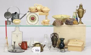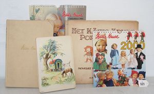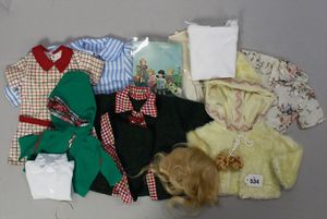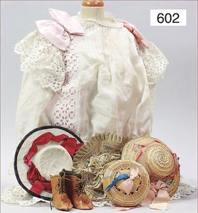 Puppenhaus, 2-stöckig, mit Turm, Höhe ca. 105 cm, Länge 60 cm, Tiefe 26 cm, mit verglasten Fenstern, Balkon, Eingangsportal, mit 2 Säulen, mit einigen Kleinteilen Mobiliar, Wohnzimmercouch, mit 5 Sesseln, 3 Stühle, kleiner Tisch, dazu 1 große Bodenplatte (herrschaftlicher Garten), mit einem eingelassenen Blech-Brunnen, mit Wasseranschluss, alles stärker bespielt, kleinere Teile weggebrochen