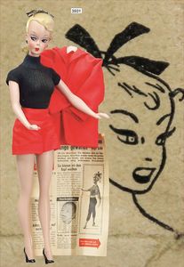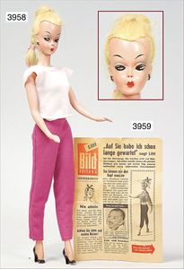 BILD LILLI (Vorläufer der Barbie-Puppe), 29 cm, Orig.-Frisur, Orig.-Haarband, Orig.-Kleidung, mit Bild-Zeitung, nahezu unbespielt