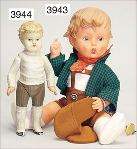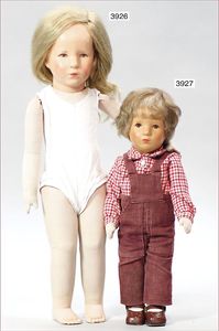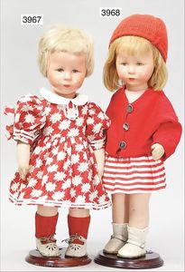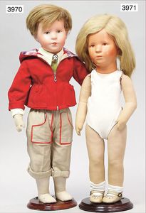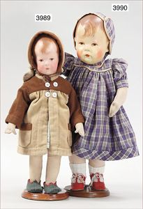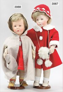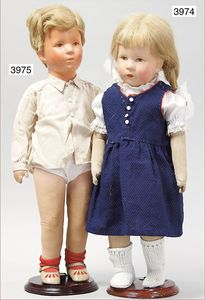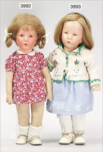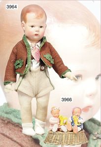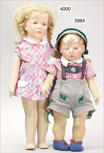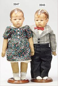 KÄTHE KRUSE Biegepuppen, Junge und Mädchen, 13 cm, Orig.-Kleidung, ausgefallen, wohl 60er/70er Jahre, im Kart.