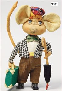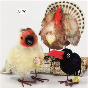 STEIFF ausgefallenes Teil der Steiff-Produktion, Hahnenkopf, ca. 1910, mit Knopf, langgezogenes F, Filz, mehrfarbig, als Karnevalsmütze, angesetzte Glasaugen, sehr lebensecht, 25 cm Durchmesser, Filz in sehr schönem Orig.-Zust., selten