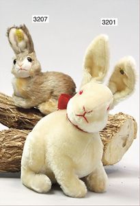 STEIFF Hase, Mohairplüsch, hellbraun, gespitzt, Vorkrieg, mit Knopf, langgezogenes F, Drehkopf, große Glasaugen, verstellbare Ohren, Schnurrhaare, Mohair seitl. etwas abgerieben, Sitzhöhe 15 cm ohne Ohren, ca. 1930, schöner Orig.-Zust.