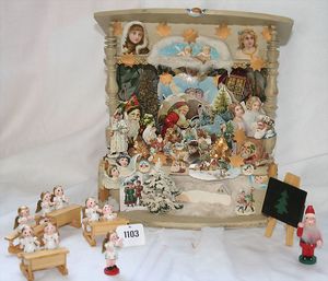 Konv. Papierausschneidepüppchen, mit Kleidung, versch. Alters und einige Nikolaus-Lebkuchenbilder