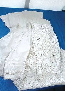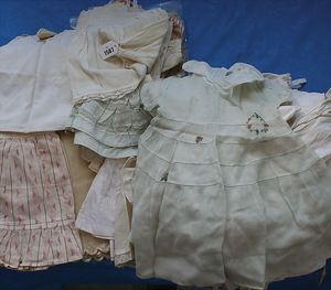 schönes Konv. Weißwäsche in Kleinkindergröße, teilweise spitzenbesetzt, Kleider, Unterkleider, Röcke, Blusen