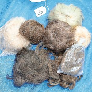 ARMAND MARSEILLE AM 390, braune, fest eingesetzte Glasaugen, off. Mund, Zähne, Kopf unschön geklebt, Wollperücke auf Masse Gliederkörper, mit festen Handgelenken, stärker bespielt, 28 cm