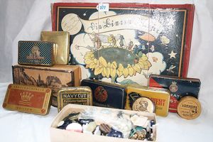 Konv. alte Schachteln und Dosen (Tabak), dazu 1 Kinderspiel Biene Maja Hauser Verlag, nur noch Spielplan und Orig.-Kart. vorhanden, Spielsteine fehlen, Deckel etwas zerschlissen