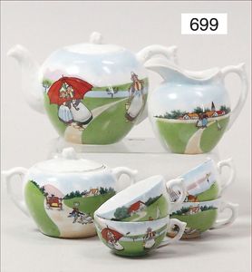 Kinder-Kaffeeservice, gemarkt Bavaria, Motiv spielende Kinder, Teekanne, Höhe 10 cm, Zuckerdose, Milchkännchen, 4 Tassen, ohne Untertassen