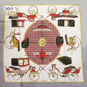 HERMES Seiden-Halstuch, Les Voitures A Transformation Paris, ausgefallenes Kutschen-Motiv, silber/rot/schwarz, mit Goldornamenten, ausgefallen, 1x überbügelt, dazu 1 Seiden-Halstuch Gerome, neuwertig, beide ungetragen