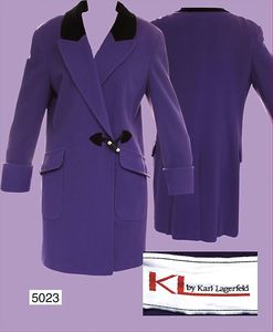 KARL LAGERFELD Damen-Mantel, ca. 70er Jahre, Gr. 38, lila, gepolsterte Schultern, ausgefallen, neuwertig
