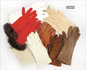 Konv. Damenhandschuhe, untersch. Alters, 30 - 60er Jahre, 1 Paar Damenhandschuhe mit Nerzpelz, ausgefallen, teilw. Leder, bzw. Wildleder